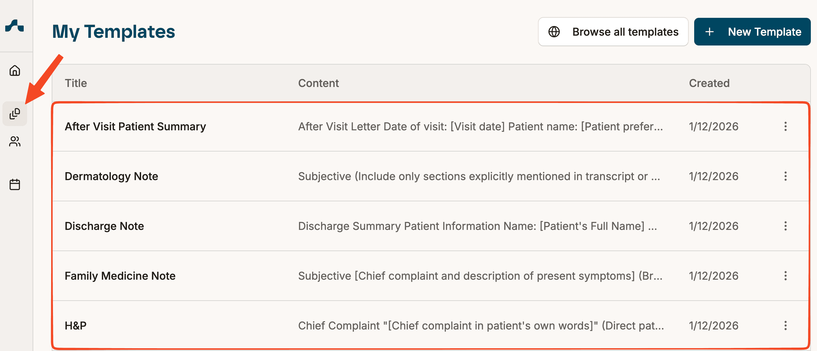 Your default template is automatically selected when you start a new visit. Setting this to your most-used template saves time.